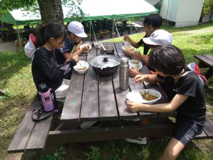 みんな自分たちが作ったカレーライスをしていました。食後は食器洗いです。