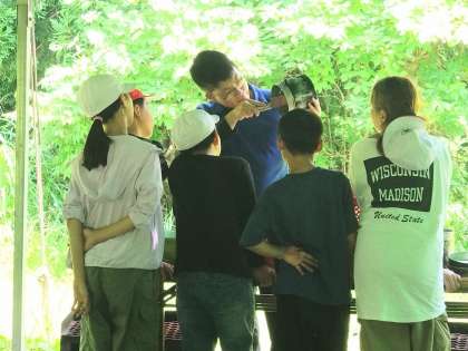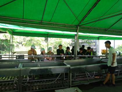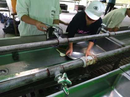 食器洗いのあとは宿舎の人に点検を受けます。磨き残しがあればやり直しです。ドキドキしながら点検をしてもらっていました。