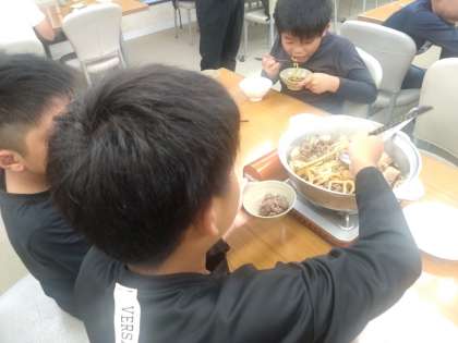 今日もモリモリ食べて盛んにおかわりしていました。みんな満足いっぱいの笑顔です。