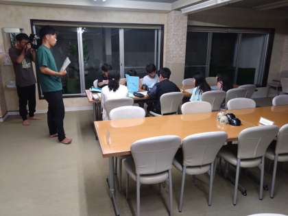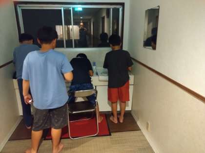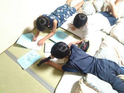 花火のあとは今日の振り返りを各自が書き、室長会議をしました。そして就寝準備です。