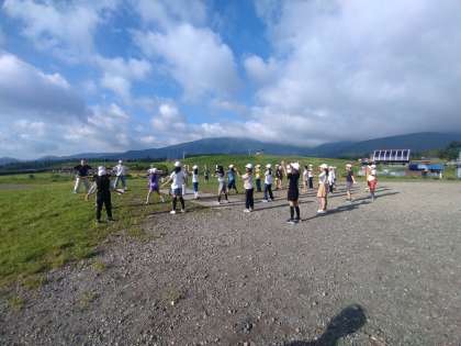 3日目、最終日を元気に迎えました。昨夜はよく寝たようです。清々しい風が気持ちいいです。ラジオ体操のかわりに、昨年の運動会で踊ったダンスを元気よく踊りました。