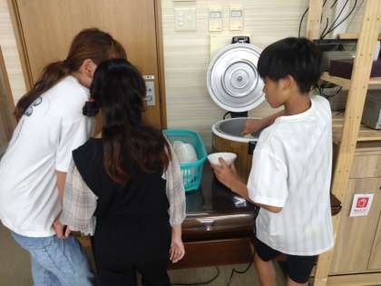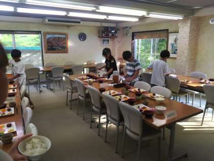 すっかり慣れた食事係が朝食の用意をしています。ご飯や味噌汁の量も適量です。