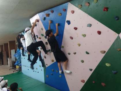アイスクリームを食べたあとはウォールクライミング活動です。順番に挑戦していきました。
