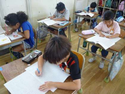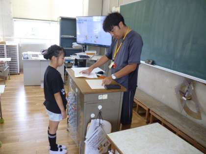 2年生は詩を書き写す学習をしました。しっかりと手本を見てていねいに書いていました。担任の先生に見てもらい、アドバイスを受けていました。