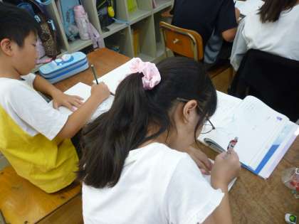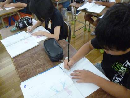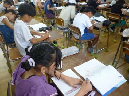 5年生は国語の教科書の詩を読み、ノートに写していきました。一画一画、ゆっくりとていねいに書いていました。