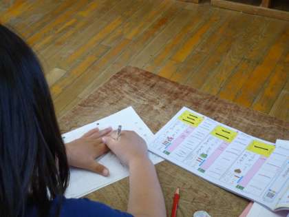 1年生は初めて漢字とカタカナを習いました。漢字は「一」「二」「三」、カタカナは「ク」「レ」です。なお、1年生で習う漢字は80字、6年間で1026字を習います。