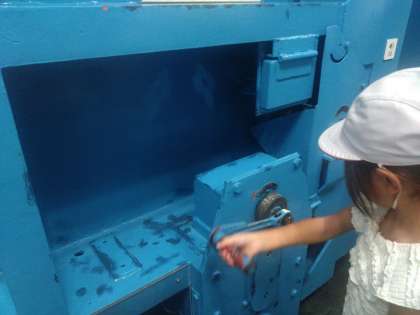 防潮扉は実際に扉の開閉を操作しました。また土のうを持ち上げたり、重さを量りました。津波や高潮から身を守るためにどうしたらよいか、命を守るための社会見学になりました。