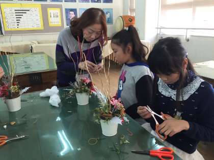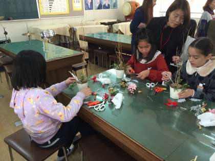 クリスマスにむけて、かわいいフラワーアレンジメントをつくりました。