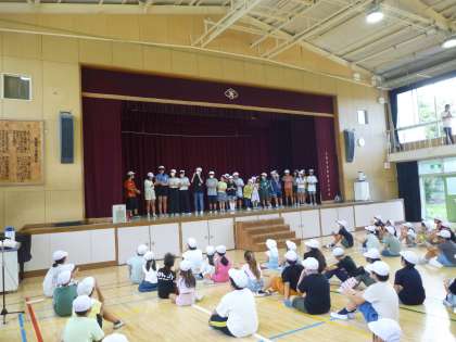 昨日、8月9月のバースデー集会をしました。いつものように一人ずつ、話をしていきます。私(校長)も舞台に上がって祝ってもらいました。(8月5日生まれ)