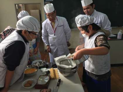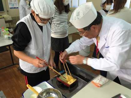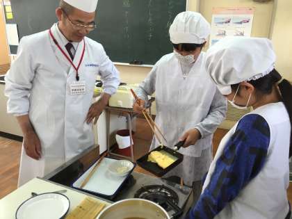 部屋中にだしのよい香りがする中で、緊張しながらも、自慢のだし巻を作りました。
