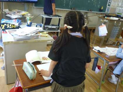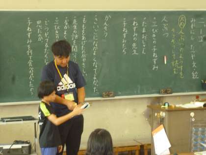 2年生は国語で「ニャーゴ」の物語を初めて読みました。本来は仲良くなれない猫とネズミが仲良くなっていくというお話です。今日は初めて読んだ感想を書いて発表し合いました。