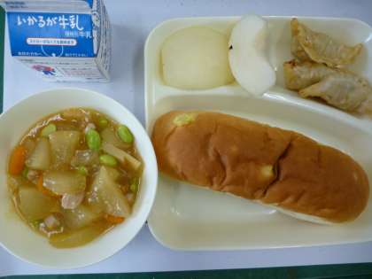 9月10日の給食は「揚げ餃子」「鶏肉ととうがんの中華煮」でデザートに梨(豊水)が出ました。暑い日が続いていますが、梨が出ることで給食で秋を感じました。