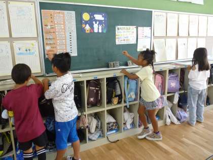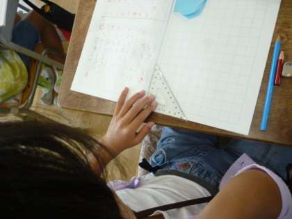 2年生は直角を初めて習いました。三角定規を使って教室内の直角を調べていきました。ロッカーやタブレット。教科書などたくさん調べていきました。