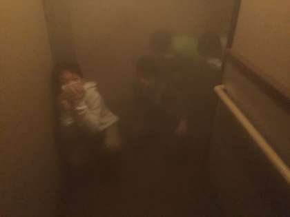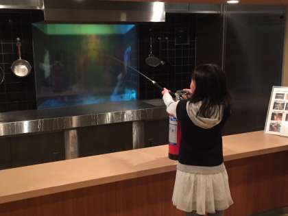 地震直後の部屋で電気やガスの元栓を止めたり、煙で充満している廊下を歩いたりしました。そして本物の消火器で火を消すことも体験し、実感をもって防災を学ぶことができました。