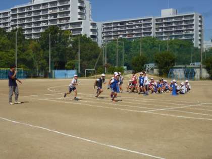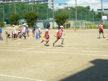 5年生はリレーの練習をしました。バトンパス、リード、コーナートップなど、留意点を教えてもらい、実際にレースをしていきました。5年生は6年生と同様、運動会で全員がリレーに出ます。