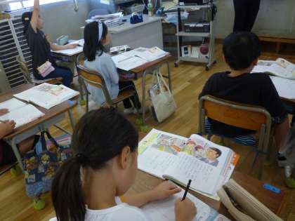 2年生は道徳で「おじさんからの手紙」を学習しました。これは遠足で同じ電車に乗り合わせた「おじさん」から学校に届いた手紙のお話です。電車に乗っていた「おじさん」がはじめはうるさいと予想していやがっていましたが、子どもたちはとても静かであり、「おじさん」は子どもたちを嫌がった自分を恥ずかしく思い、子どもたちにうれしい気持ちを手紙に書いて学校に送るという内容です。来月から遠足が始まり、マナーについて考える良いお話でした。