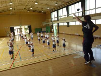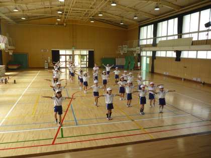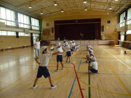 1年生と2年生は運動会のダンスの練習を始めました。まだ残暑が厳しいですが、暑さに負けずに頑張って踊っていました。教える先生も元気はつらつです。