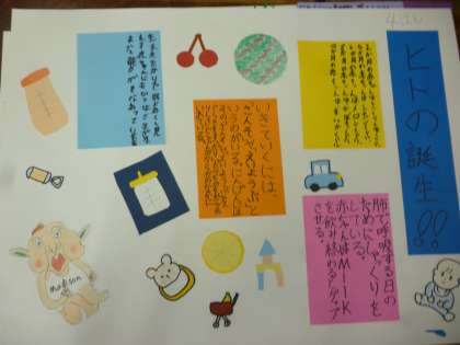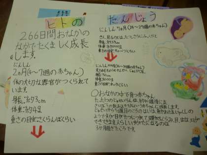 5年生は人の誕生について調べていますがポスターが完成してきました。みんな一生懸命に仕上げており、わかりやすくまとめていました。