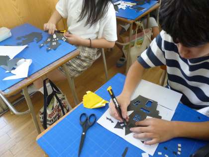 修学旅行調べ、切り絵(6年生)