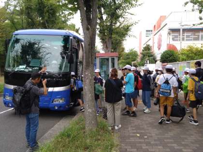 6年生は9月30日と10月1日に修学旅行に行きます。出発式でお見送りの大勢の保護者の方に「行ってきます」と挨拶をしてバスに乗りました。嬉しいことに全員参加です。保護者の皆様、お見送りありがとうございました。これから随時、修学旅行の様子をお伝えします。