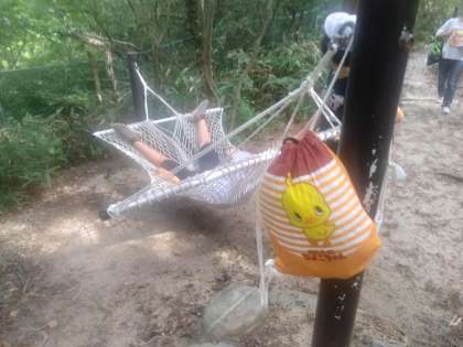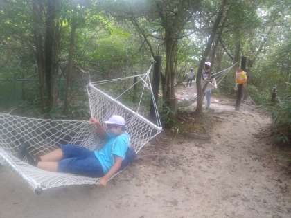ハンモックがあり、気持ちよさそうに楽しんでいます。