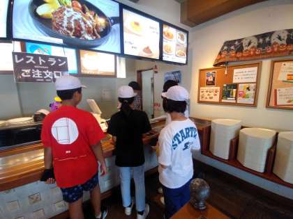ランチタイムです。あらかじめ決めておいたレストランで自由な時間に食べます。メニューはスクールメニューから選びます。