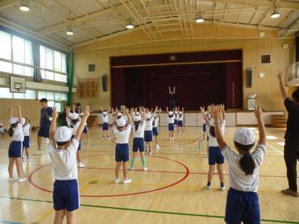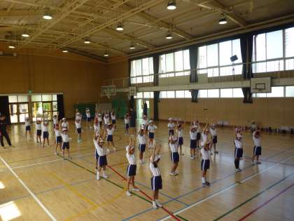 1年生と2年生は運動会に向けてダンスの練習を続けています。2曲を踊ります。今日はそれぞれの曲のサビのところを練習しました。ステージで踊りながら教える先生のダンスがとてもさまになっています。