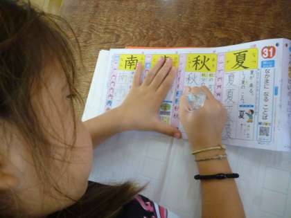 2年生は「夏」と「秋」の漢字を習いました。これで四季の漢字をすべて習い、「春夏秋冬」の読み方を教えてもらいました。