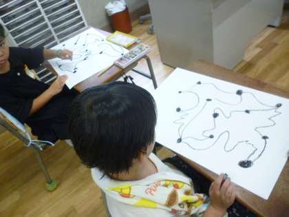 図工では「かくれんぼ」の絵を描き始めました。画用紙にランダムに黒い点を描き、黒線で結んでいきました。この絵がどのように仕上がっていくか、なぜ「かくれんぼ」なのかは次回の図工のHPでわかります。楽しみにお待ちください。