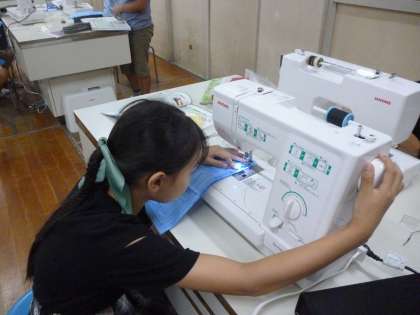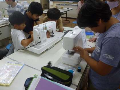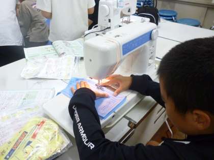 5年生は家庭科で初めてミシン縫いをしました。教えてもらったことを確認しながら上糸と下糸をセットし、練習布を縫っていきました。初めてにしてはよい手つきで縫っていました。