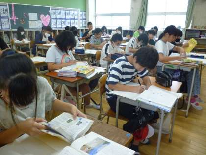 6年生は国語で【永遠のごみ」プラスチック】という説明文を学習をしています。全文を読んで、むずかしい言葉を辞書で調べていきました。環境について考えていくこれからの社会を担っていく6年生に大切な説明文です。