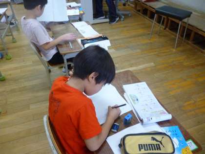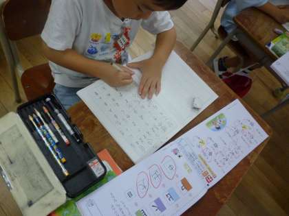 1年生は漢字をたくさん学習してきました。今日は漢字テストに備えて自分で復習していました。