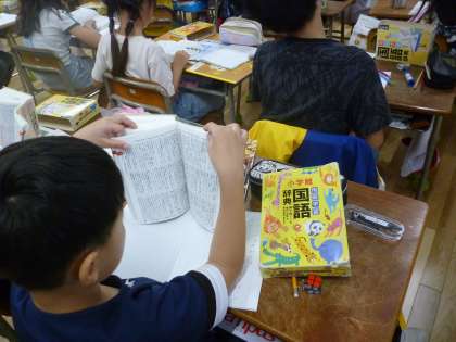 4年生は国語で「くらしの中の和と洋」の説明文を学習しています。今日は辞書でむずかしい語句を調べていきました。辞書を引くのに慣れており、早く見つけています。
