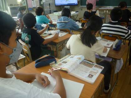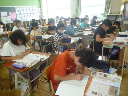 6年生は社会科の歴史で織田信長について調べました。資料集の有名な肖像画で確認しながら調べていきました。