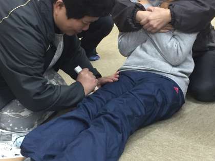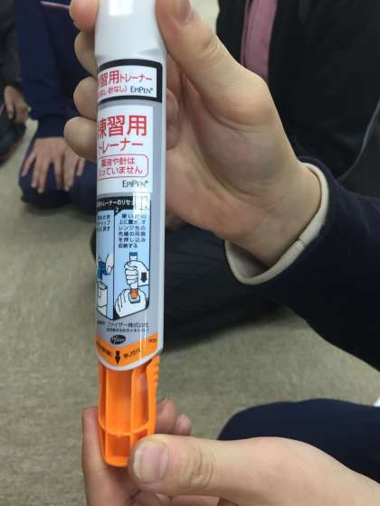 本校では養護教諭が講師役となって食物アレルギー対応の研修会を開いています。いざという時に、全教職員で対応できることが、子どもたちの命を守ります。今日はエピペンをうつ練習も全員でやりました。