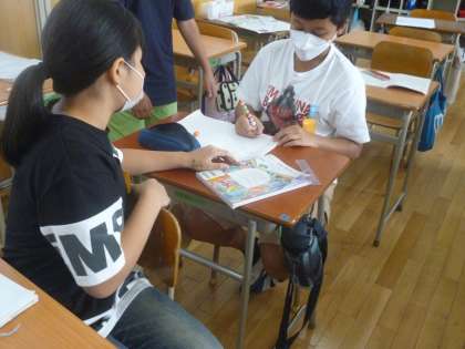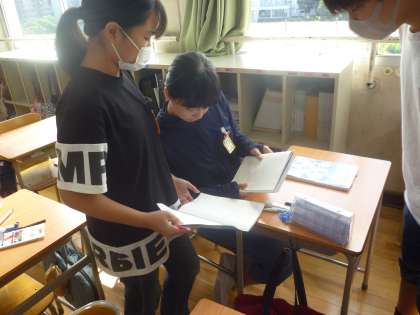 6年生は算数で「比」について学習しています。なかなか難しい単元なので、互いに教え合いながら進めていました。
