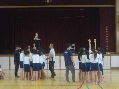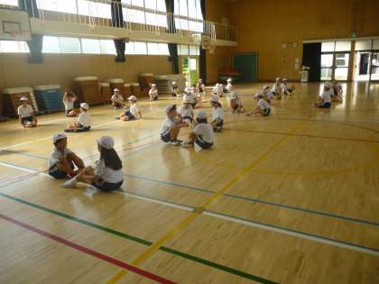 運動会まで2週間となりました。上から低学年の「大玉転がし」の練習、中学年はダンスを隣と見せ合いしながら、アドバイスをもらいました。高学年は組み立て体操の技を相談して決めていました。