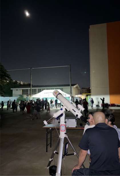 鑑賞後は天体観測を行いました。きれいな月と土星を観察することができました。フランクフルトは大人気でした。おかわりしている子もたくさんいました。冷やしパインも配ってくださいました。