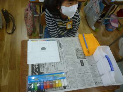初めての絵の具(2年生)