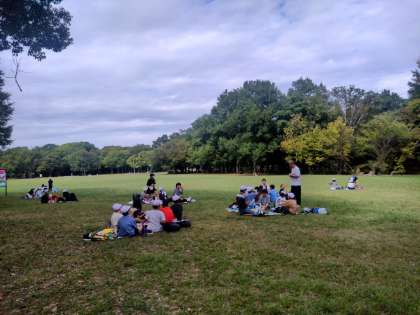 芝生広場に着いてランチタイムです。たっぷりと遊んだのでみんなお腹が空いています。