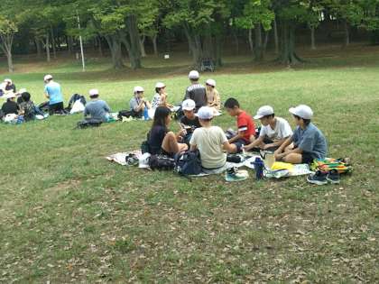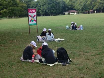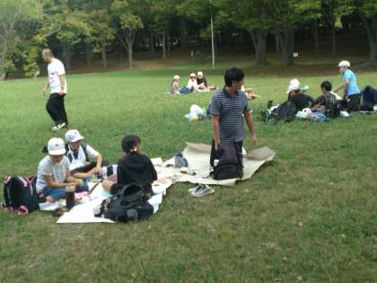 この広い広場も本校だけです。他校も多く来ていますが、この公園がそれだけ広いのです。みんな美味しそうに食べておやつも堪能しています。