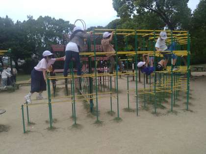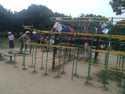 他の遊具も人気です。さすがにこの広場は他校も一緒です。