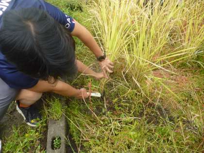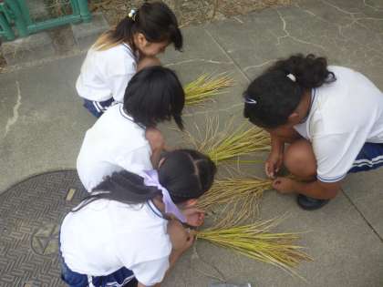 5年生は6月から育ててきた稲が実ったので、稲刈りをしました。手を切らないように気をつけて刈っていきました。