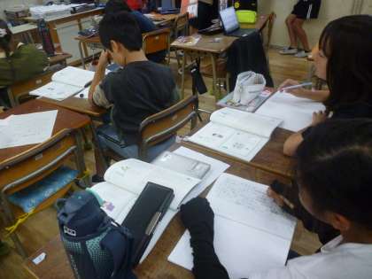 4年生は「聞いてほしいな こんな出来事」というテーマで作文を書きました。自分の経験した出来事を詳しく書いていき、その時の気持ちも書いていました。先生に見てもらいアドバイスを受けていました。一部、読ませていただきましたが、とてもよく書けていました。