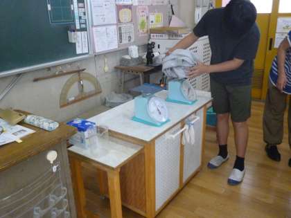 6年生は家庭科で洗濯をします。今日はその準備として、選択のしかたについて学習しました。洗濯は手洗いです。実際に衣類の重さを測ったり、選択方法をノートにまとめていきました。、