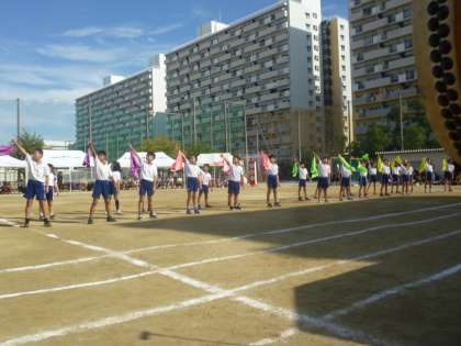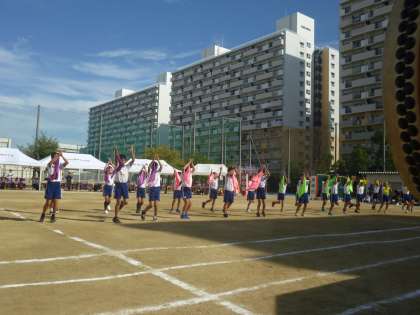 3年生、4年生のダンスの続きです。体を傾けたり、腕を回したりとバリエーション多彩な見事な振り付けです。それをとても上手に踊っていました。