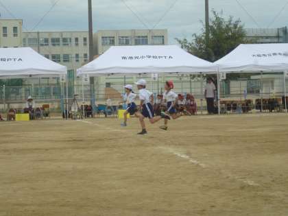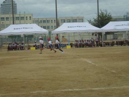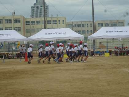 続いて、1年生の「かけっこ」です。初めて運動会で走ります。最後までしっかり走る姿に大きな拍手です。