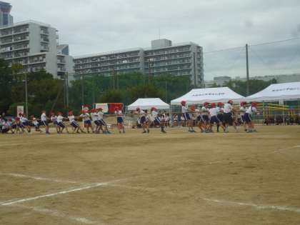 次は3年生、4年生の綱引き「ひっぱれ!3,4年生!!」です。力いっぱい引っ張っているのは見ていて伝わってきました。「勝ちたい!」という気持ちが強く出た綱引きです。