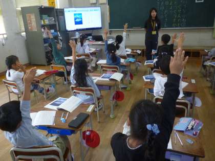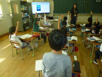 1年生は国語で「いろいろなふね」について学習しています。客船など船内の様子が書かれています。船をイメージしながら読んでいました。しっかりと手を挙げ、積極的に発表し合いました。