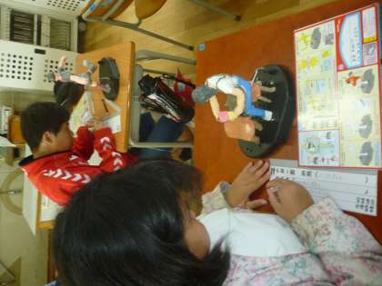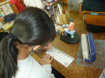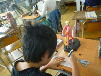 6年生は工作「未来のわたし」が完成したので、作品の説明の短冊に記入していきました。